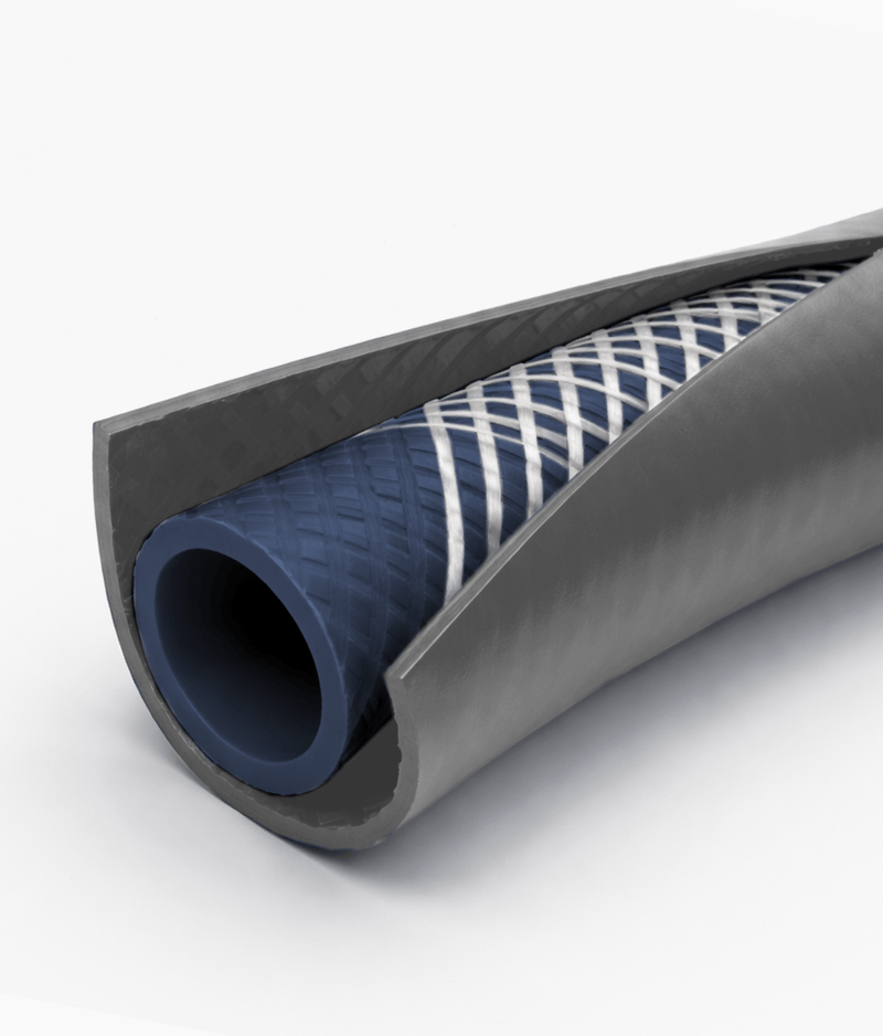| Fabricada con dos capas de PVC y una malla de refuerzo de poliéster que aumenta su resistencia estructural, evitando el colapso y la obstrucción del flujo de agua.