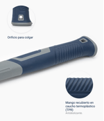 | El agarre está compuesto por PP y TPR, materiales esenciales para brindar confort, durabilidad y sujeción.
