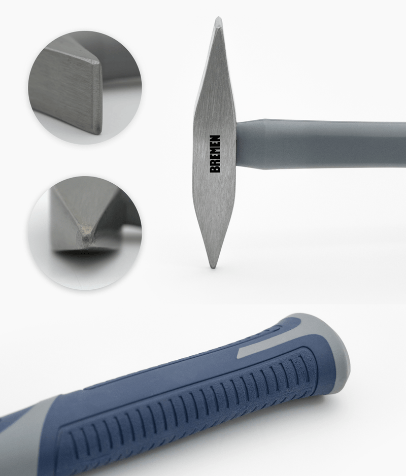 | Cabeza de acero al carbono forjado, con un extremo en cincel plano y otro en pico.