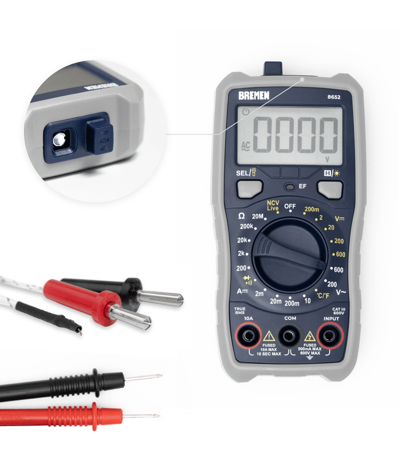 | Detección de voltaje sin contacto (NCV).