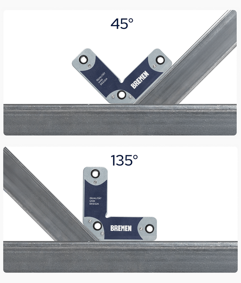 | Sujeta piezas a 45°, 90° y 135° | Poseen un imán en su interior. | Caras imantadas. | Soportan cargas de 9 Kg