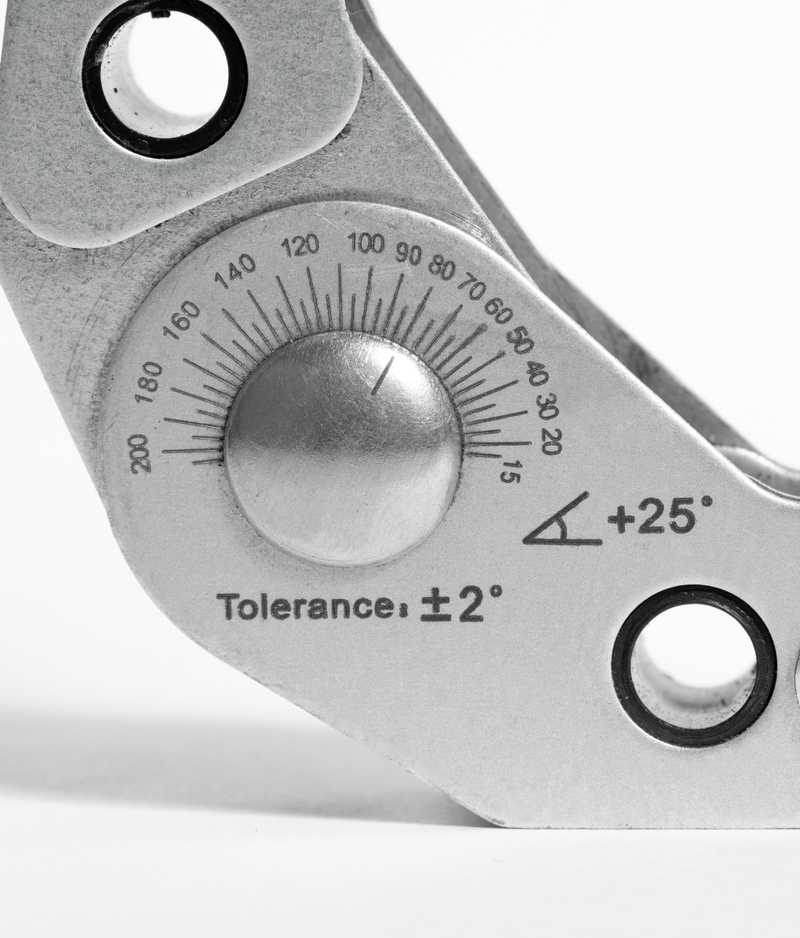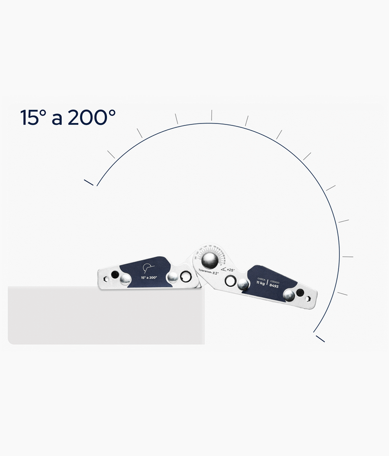 | Sujeta piezas de 15° a 200°. | Permite seleccionar y fijar el ángulo deseado con su llave allen incluida. | Poseen un imán en su interior. | Caras imantadas. | Soportan cargas de 11 kg. | Tolerancia de ±2°